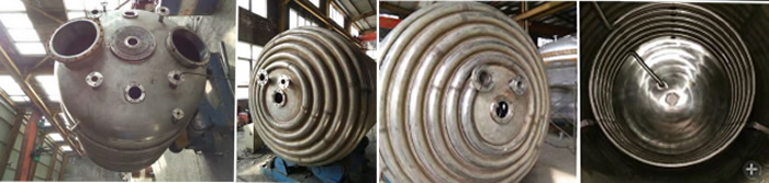 功能作用:主要是为解决现有的蒸馏生产过程中当物料中含有固状物及高沸点物时需间断检修清理的问题而设计的。它包括蒸馏釜壳体,在蒸馏釜壳体上方是上封头,上封头上有气体出口,配合蒸馏塔使用,有些需要带搅拌,搅拌起强化换热作用,以及除沫作用。一般形式为盘管加热或外半管、夹套加热。蒸馏釜下部为固状物及高沸点物沉降室,蒸馏釜底部设固状物及高沸点物排出口。优点是可随时排出固状物及高沸点物,无须间断检修清理,保证生产连续进行。 蒸馏釜和蒸发釜本没有较大区别,其目的是将需要分离液体物质加热沸腾后,在常压或减压下蒸发的这一目的,其加热介质可以是蒸汽、导热油、电加热等。在实际使用中较普遍运用在化学分离、废水治理、蒸发结晶等的各个领域。
